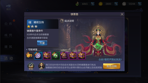 由会长开启,公会成员一起击杀召唤出来的公会BOSS之后获得奖励。