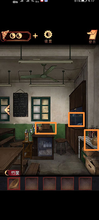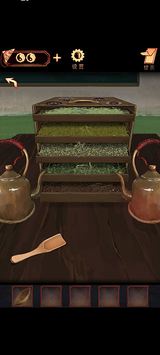 1、点击茶楼,与客人甲乙交互。点击客人旁边的柜子,得到竹筐,拉开帘子,查看茶谱。