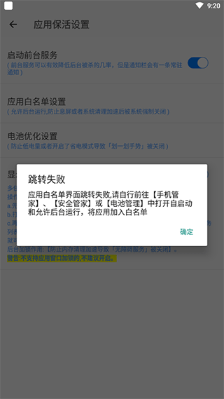 4、想要开启白名单设置需要自己手动开启,每部安卓手机的设置界面不一样,这里后面会讲