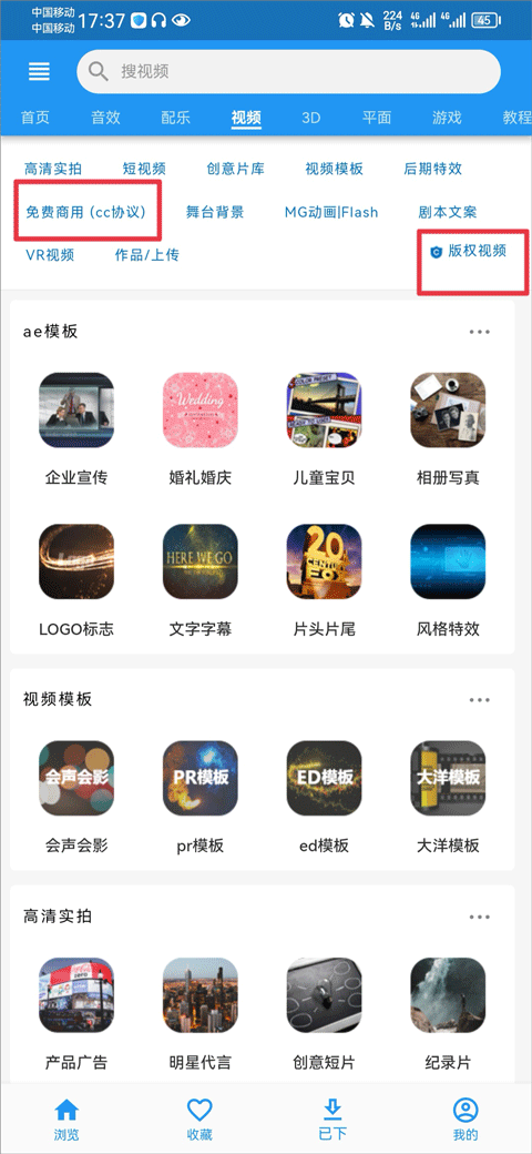 素材分为可商用素材和不可商用素材。