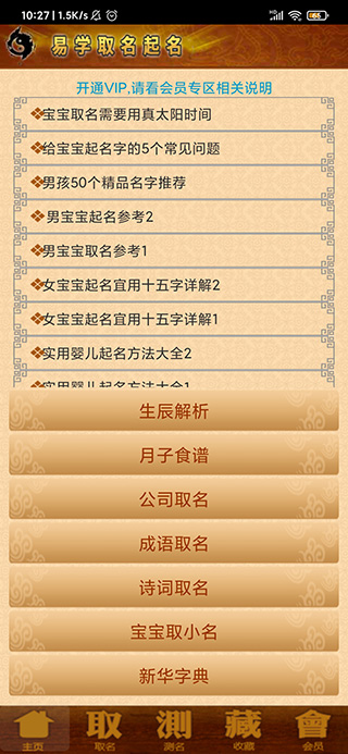 1、在本站下载安卓安装易学取名起名破解版后,进入首页即可查看到对应的功能板块