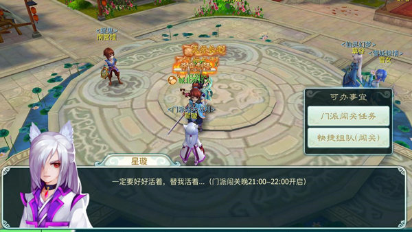 六大门派联合举办门派闯关赛,活动需要组队,挑战六大门派大弟子获胜后可获得丰厚奖励,用时最快挑战所有门派的玩家可获得神秘额外奖励。人数要求:组队玩法(三人或三人以上)