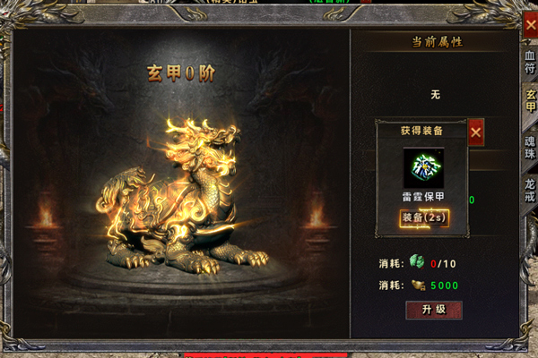 ★玄甲有防御和防御加成,需要消耗玄甲结晶和元宝进行升级