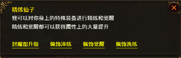 精炼可提升封魔图基础属性,还能使其套装效果变得更强