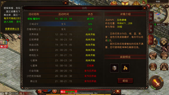五色任务分为白、绿、蓝、紫、金,金色任务奖励最好,每天可以完成5次。