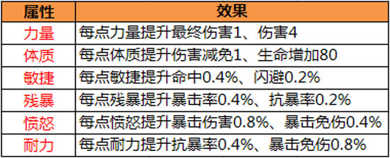 在王者觉醒版本出来之后,大家可以发现自己装备的详细属性上增加以下6个属性:力量、残暴、愤怒、敏捷、耐力、体质,图1,其中每个属性对应的效果如下: