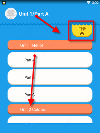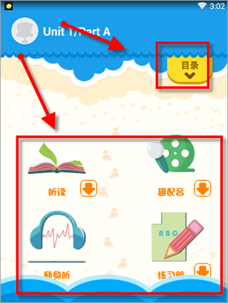 4、选择好了以后,就按照你自己的需要,可以从四个方面开始学习啦,右上角还有目录可以让你自己选择学习的版块
