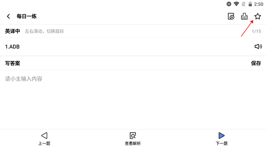2、选择你想要收藏的题目,点击右上角的星号图标即可进行收藏。