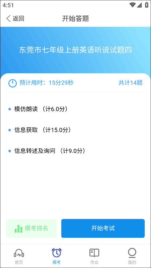 中高考口语模拟考试:中高考纳入口语考试省份的同学,可以模拟口语训练,还原口语上机考试题型及考试场景。