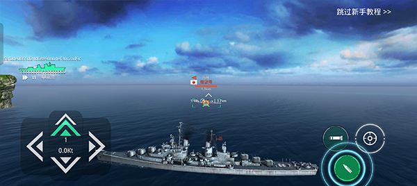 1、进入游戏之后,左下方的摇杆来控制战舰的行驶方向,我们只需要长按它就就可以根据我们点击的方向进行行驶了;