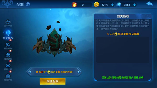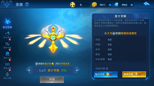 2、圣器的养成是通过阵营英雄的养成来实现,阵营英雄达到指定星数可升级圣器,圣器升级后加成比例会提高。