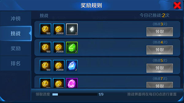 5、每日有挑战奖励,挑战次数越多,可领取奖励越多。每日可挑战次数与VIP等级相关,VIP等级越高,次数越多。