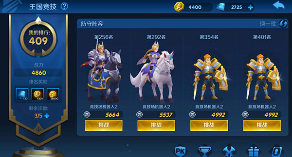 8、竞技场战斗分为3路,玩家可自由布阵,最多个上5名英雄。