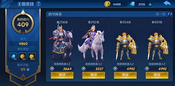 - 竞技场战斗分为3路,玩家可自由布阵,最多个上5名英雄。