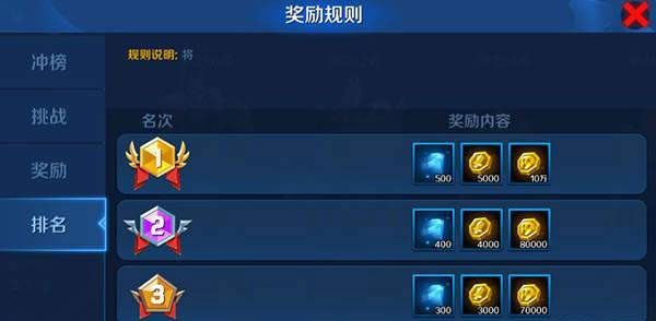第5001-10000名:钻石*80、竞技币*800、金币*3万