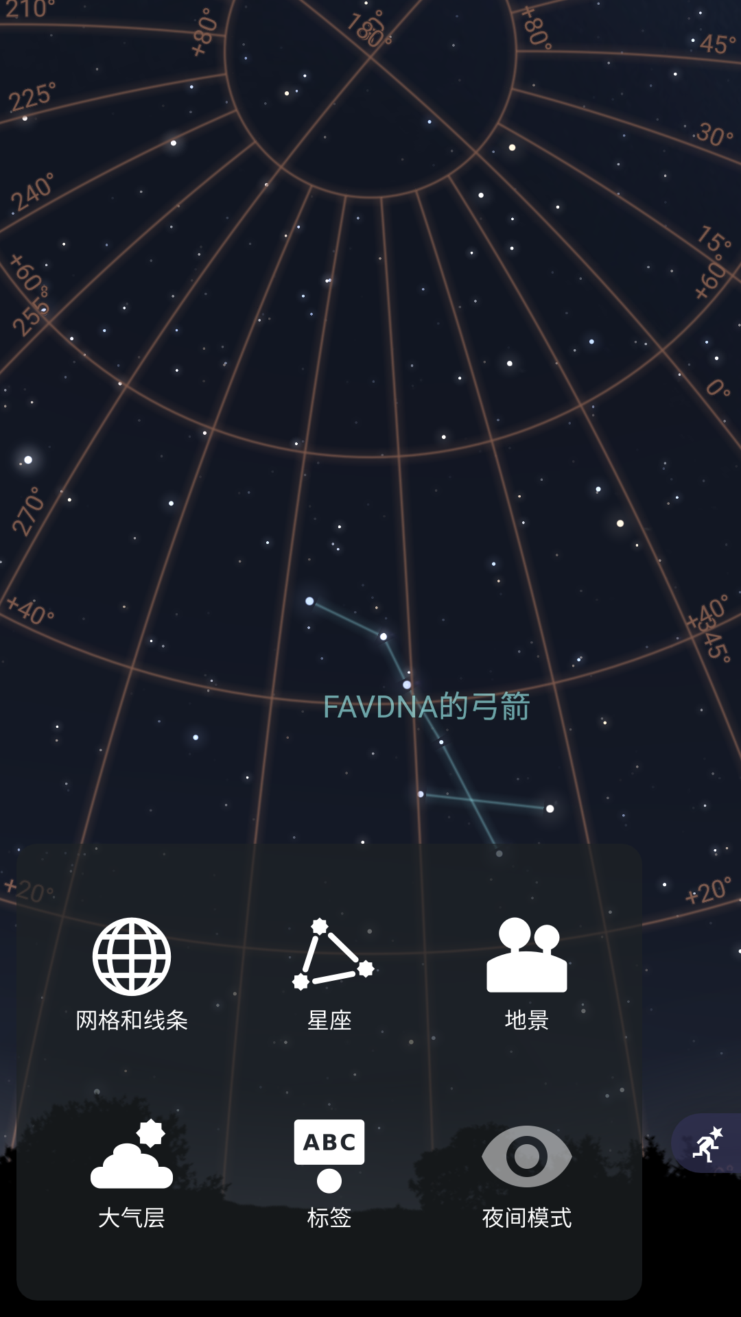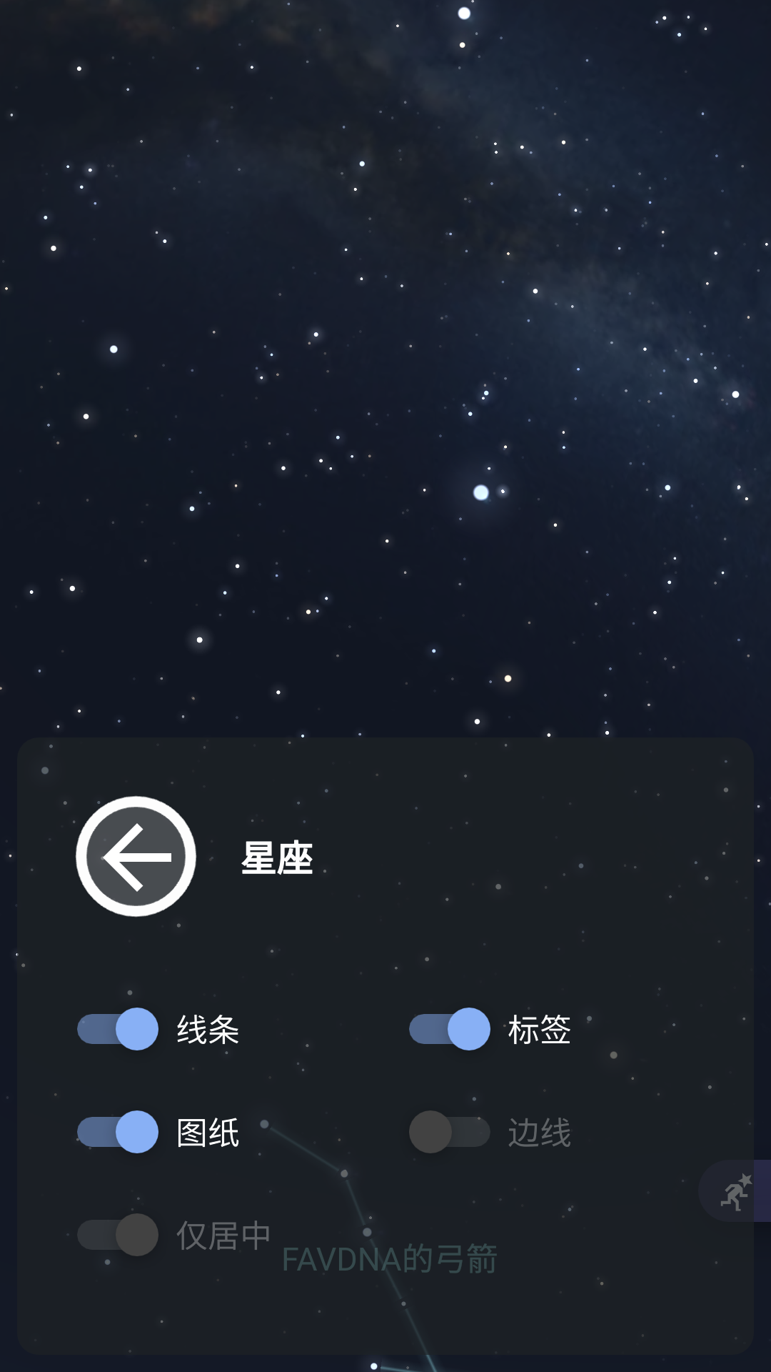 5、长按星座按钮可选择星座的标签与图纸,可更好的观测到各星座,以上就是虚拟天文馆plus最新版的用法了。