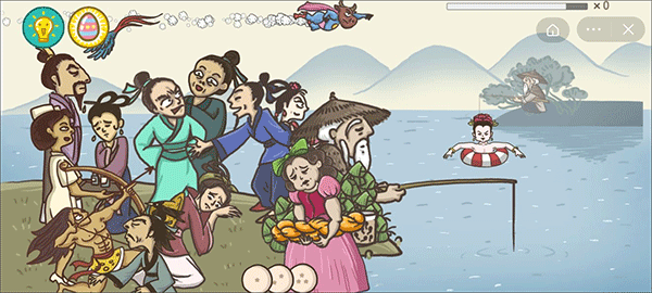 游戏里还加了很多流行元素和搞笑彩蛋,像“姜太公钓鱼”会钓到粽子,“嫦娥奔月”还能变出兔子,这些设定真的让人忍俊不禁。玩的时候 totally 需要开脑洞,不能用正常思维去想问题。如果卡关了,还可以用锦囊提示来帮忙,这点设计真的很贴心。