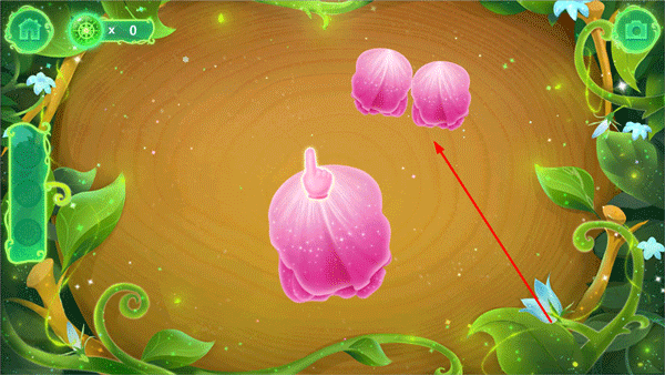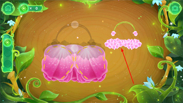 2、打开花朵包包制作房间后,按照指示把花朵放到中间;