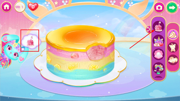 1、莉比小公主独角兽餐厅游戏中可以给蛋糕点缀上甜蜜的饰品