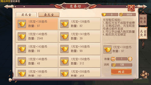 4、元宝兑换,比例为1比100。但是基本没人这么做,挂交易行比例更高啊。