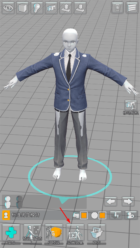 1、添加完模特后,点击下方动画效果;