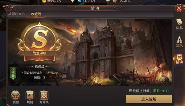 每周日晚上8点半是战盟攻城战,有时间的玩家一定要记得参加,这个活动不仅奖励丰厚,还代表着战盟的实力。盟主要提前通知成员记得准时参加。必要时,可以事先分组,安排组长带队,分别攻打各个要点,这样在遇到势均力敌的对手时,更容易取胜。