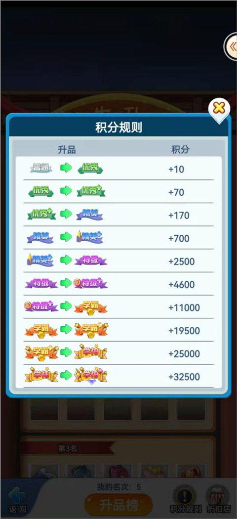 升品的积分不需要我们计算,学生升品冲榜活动开始后,点击进入规则,我们就可以看到相应的积分规则,具体规则如下图所示。