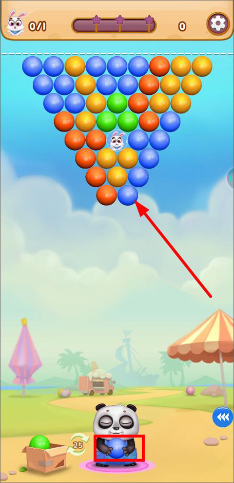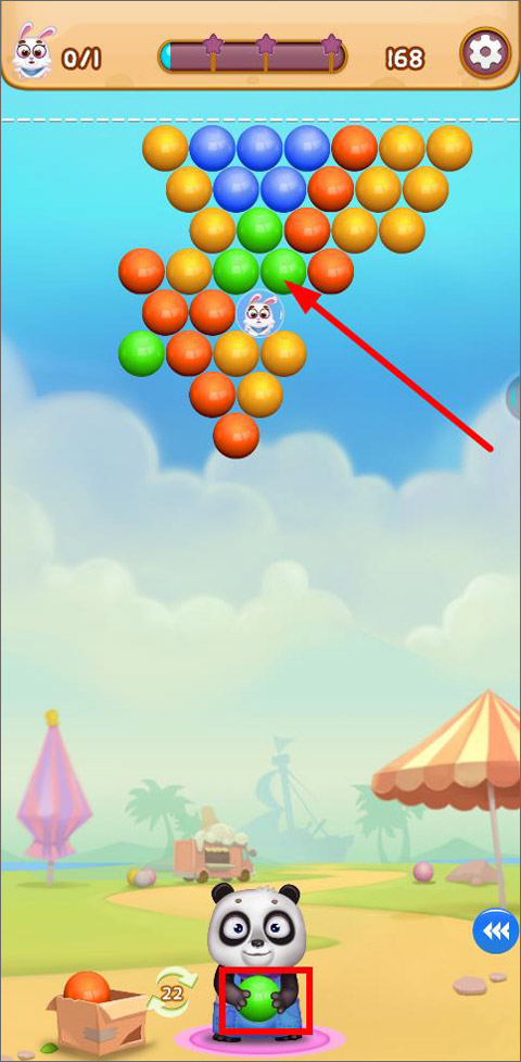 2、在游戏中需要控制萌熊击落相同颜色的球体,解放兔子;