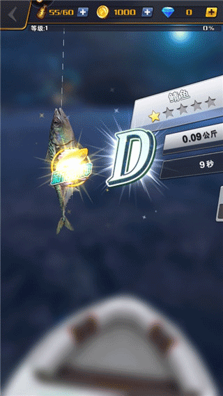 3、按住屏幕进行收线,把鱼拉上岸;