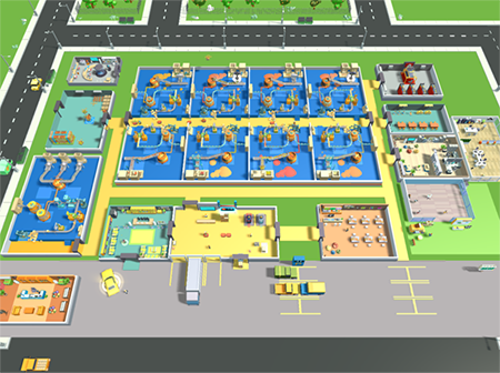 精美的卡通风格的游戏,很好的场景打造,为你提供一个专属你的工厂。