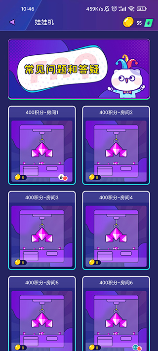 金币嘉年华是一款由上海子默网络科技有限公司开发的休闲娱乐软件,里面集合了很多电玩城游戏,比如抓娃娃、推币机和街机等。最吸引人的是抓娃娃功能,有超过二十种不同类型的娃娃,像皮卡丘、小兔子这些都很好抓,而且还能免费包邮送到家。玩游戏的时候,金币可以通过完成任务或者邀请好友来获取,特别方便。