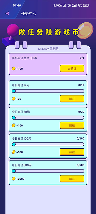 4、如果没有金币的玩家,可以通过做任务的方式来获得金币,而且任务非常简单;