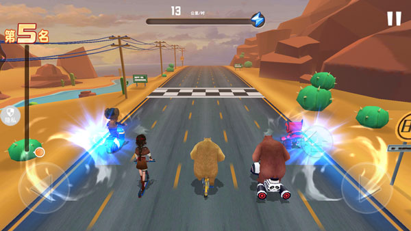 这里具备熊大、熊二、光头强、小铁、纳雅五大角色可供大家解锁选择,但每个角色所驾驶的载具也各不相同,所提供的助速度、电量和氮气也不一样,毋庸置疑纳雅是最棒的。