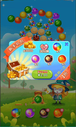 1、瞄准和发射您想要的泡泡。2、匹配3个或更多相同的气泡。