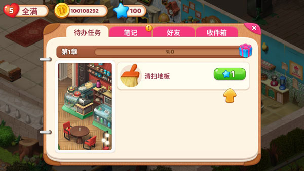 庄园咖啡厅是一款结合了消消乐玩法的经营模拟手游。玩家一开始会得到一个破旧的咖啡馆,通过完成新手任务快速上手。游戏里需要通过消除小游戏来获取星星,用来翻新家具和升级店面。每次行动都要消耗星星,但这种设计既增加了趣味性,又能帮助玩家更快赚取资源。