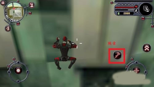 轻按‘绳索’的框钮,可以使英雄贴紧途中墙壁,向上攀伸,在上端走可以视的更辽远一些。