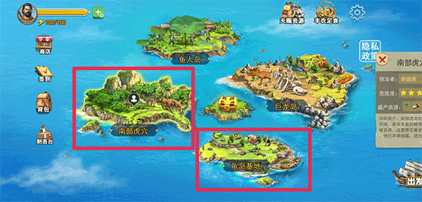 4、想获取随机礼包可以在大地图点击方框内的岛屿;