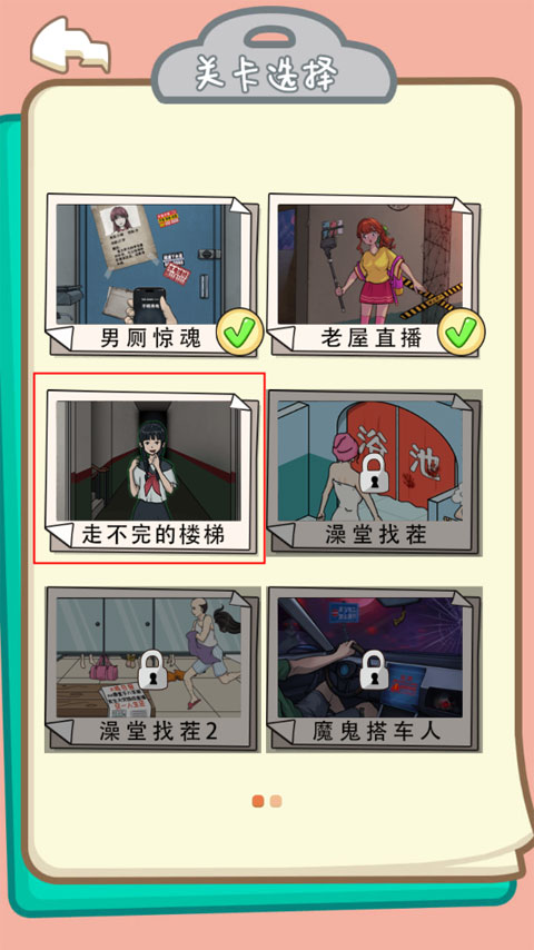 1、进入游戏中的诡异找茬,点击走不完的楼梯。