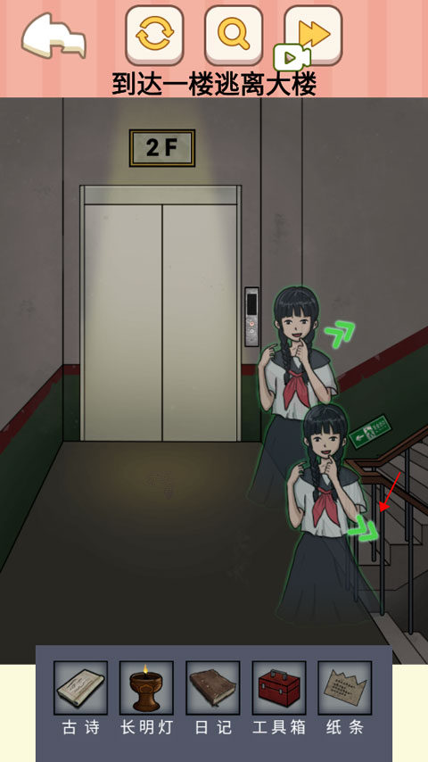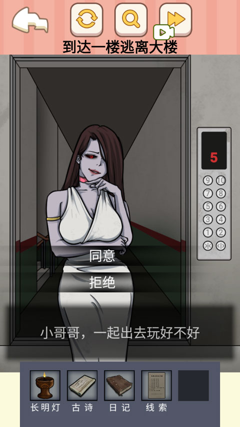 9、遇到五楼的女人也不用管她,后面直接点击一楼就可以逃离成功了。