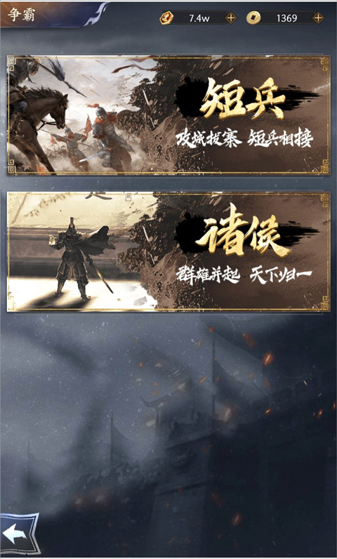 玩家通过短兵、单骑闯关,锻炼自己的武将来增加战斗力。短兵、单骑也是非常简单,进攻其他玩家,胜利可掠夺玩家金币,提升战力,还能够查看战报详情分析战斗数据,制定专属于自己的玩法。