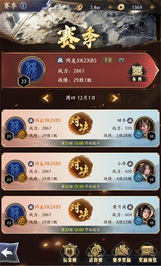 如何才能获取心仪武将呢?当然进入出征场景,参加每周一次的赛季PK!