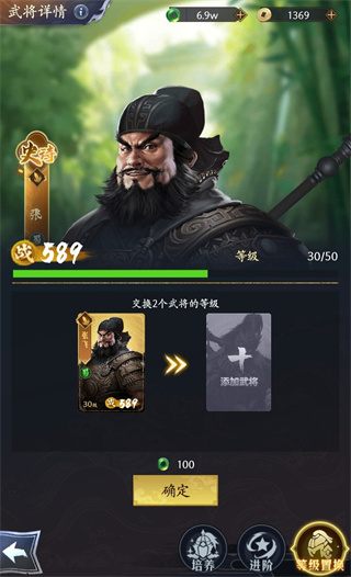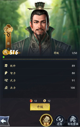 武将品质及战力主要由4种属性决定,分别是统帅、智力、武力、兵力。4种属性均会影响武将最终战力,此外智力还会影响玩家掠夺资源的能力,兵力则会决定可携带最大士兵数。获得武将后玩家可以通过升级及进阶进行战力提升。