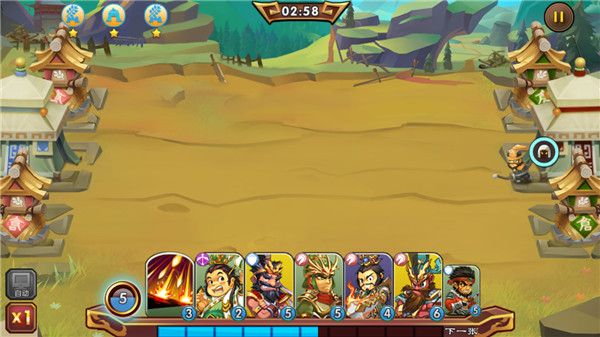 游戏中主要的战斗类型分为:对攻,守城,攻城3种。每个战斗类型的胜负条件不一样,关卡3星获得条件也不—样。