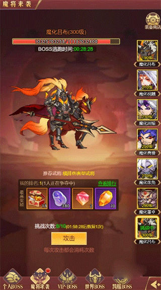 前期资源不足的情况下,让武将装备低级的装备可以短时间提高战斗力,能轻松碾压低难度副本,从而快速获取资源,至于低级装备的获取途径打一些低级的boss就可以一次性获得,不用重复攻打。