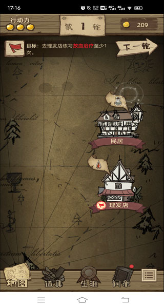 条件:含有证书要求的每日任务环节不达标,即规定时间内未达到放血、截肢、制药领域的初级、中级、高级证书,主角会放弃从医,和父亲一起出海经商(我觉得也挺好的)