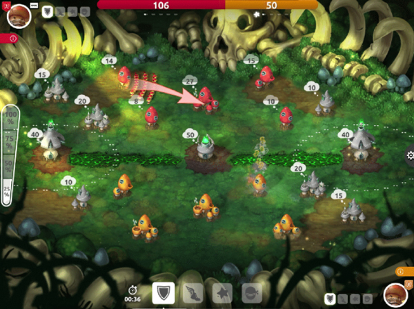在蘑菇战争中,由A点往B点出兵的操作是单手点A点然后拖到B点松手,但在手游操作中,是可以单手指按住A点,然后另一指点B点然后松手,开局操作时,在安全的情况下,可以由开局点向好几个点位同时出兵来抢先占领发育的速度。举个例子,A点开局,离对方较远,可以安全的往好几个点位发育,兵力也足够时,你可以按住A点,然后另一指单击B点后再单击C点,这时候你A点的兵就会往B点和C点出发来保证发育速度。