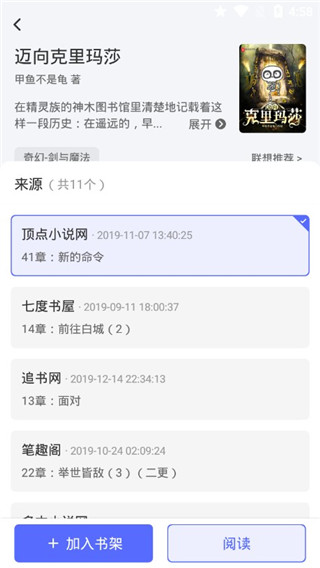 4、遇到喜欢的小说书籍可以加入到书架中,下次可以直接拿来阅读;
