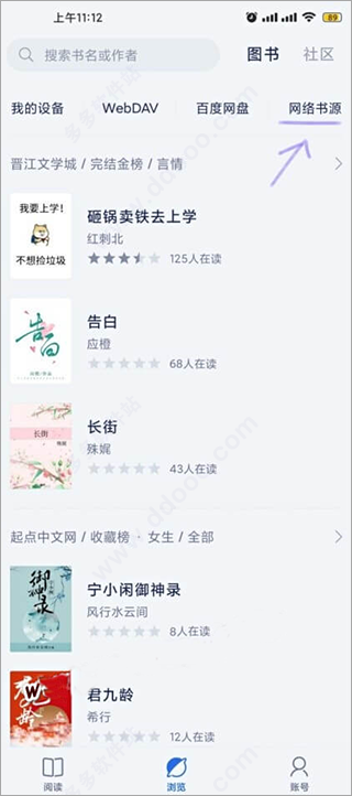 1、厚墨原系统自带十几个知名书源包括起点、晋江、网易等源,无论你在什么地方追书,都可以通过厚墨接入获取。还可直接查看书源排行版,不论是出版物或是网络小说都是可以搜到的,再也不要为了书荒而发愁了。