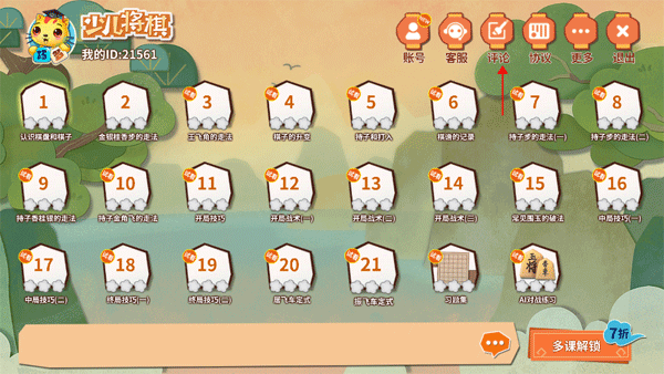 而且,软件里还有真人对战和机器对战两种模式,孩子可以根据自己的水平选择对手,这样能更好地提升技术。评论功能也很方便,用户可以直接分享自己的看法,挺适合交流学习心得的。