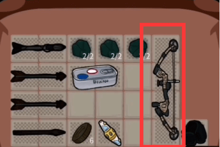 1、弓箭流的配置的核心武器就是【迷彩复合弓】,将它放置到下图背包最右侧。